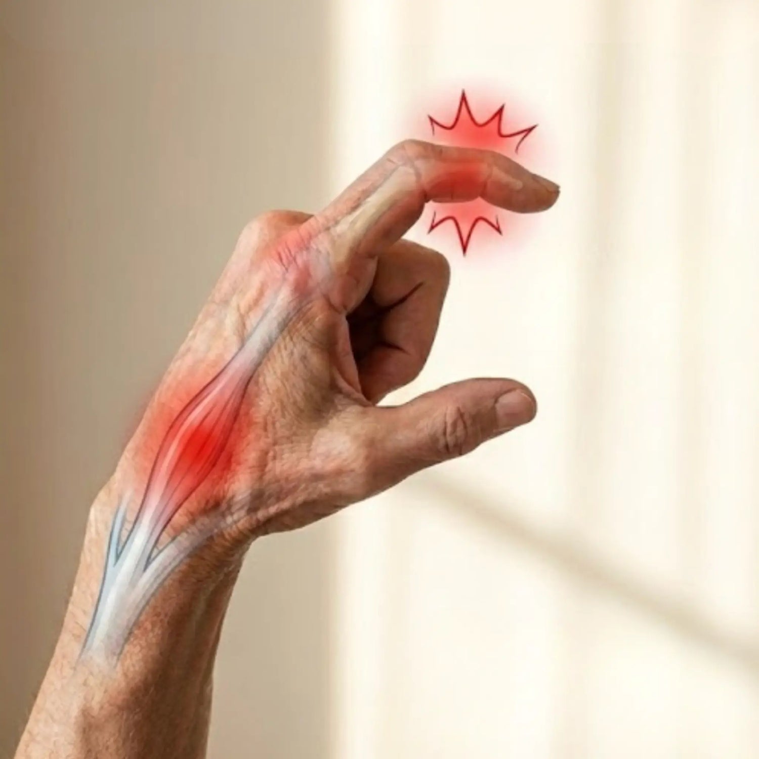 Sanfter Druck hilft, Flüssigkeitsein-lagerungen abzubauen und gereizte Sehnen zu beruhigen - ideal bei Triggerfinger oder Karpaltunnel.