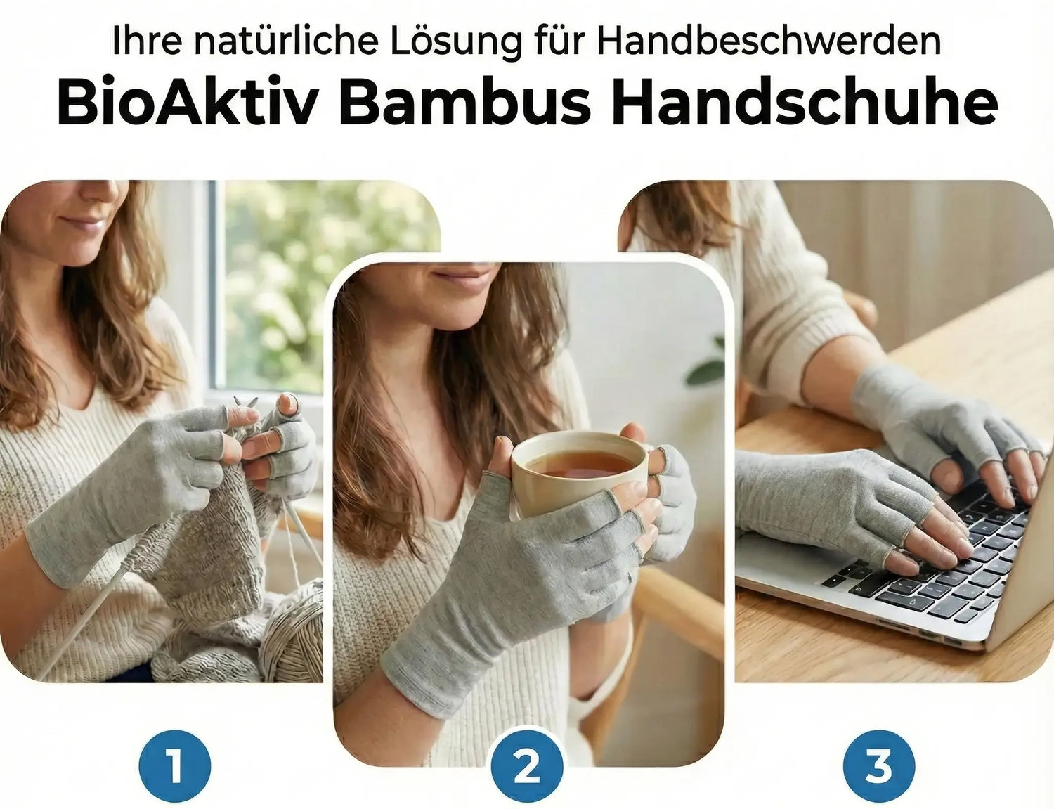Seitdem ich die BioAktiv Bambus Handschuhe trage, fühlen sich meine Hände endlich entlastet an. Die Schmerzen in den Gelenken sind deutlich geringer und meine Finger bewegen sich viel natürlicher. Das Material ist weich, angenehm und perfekt für den täglichen Gebrauch.