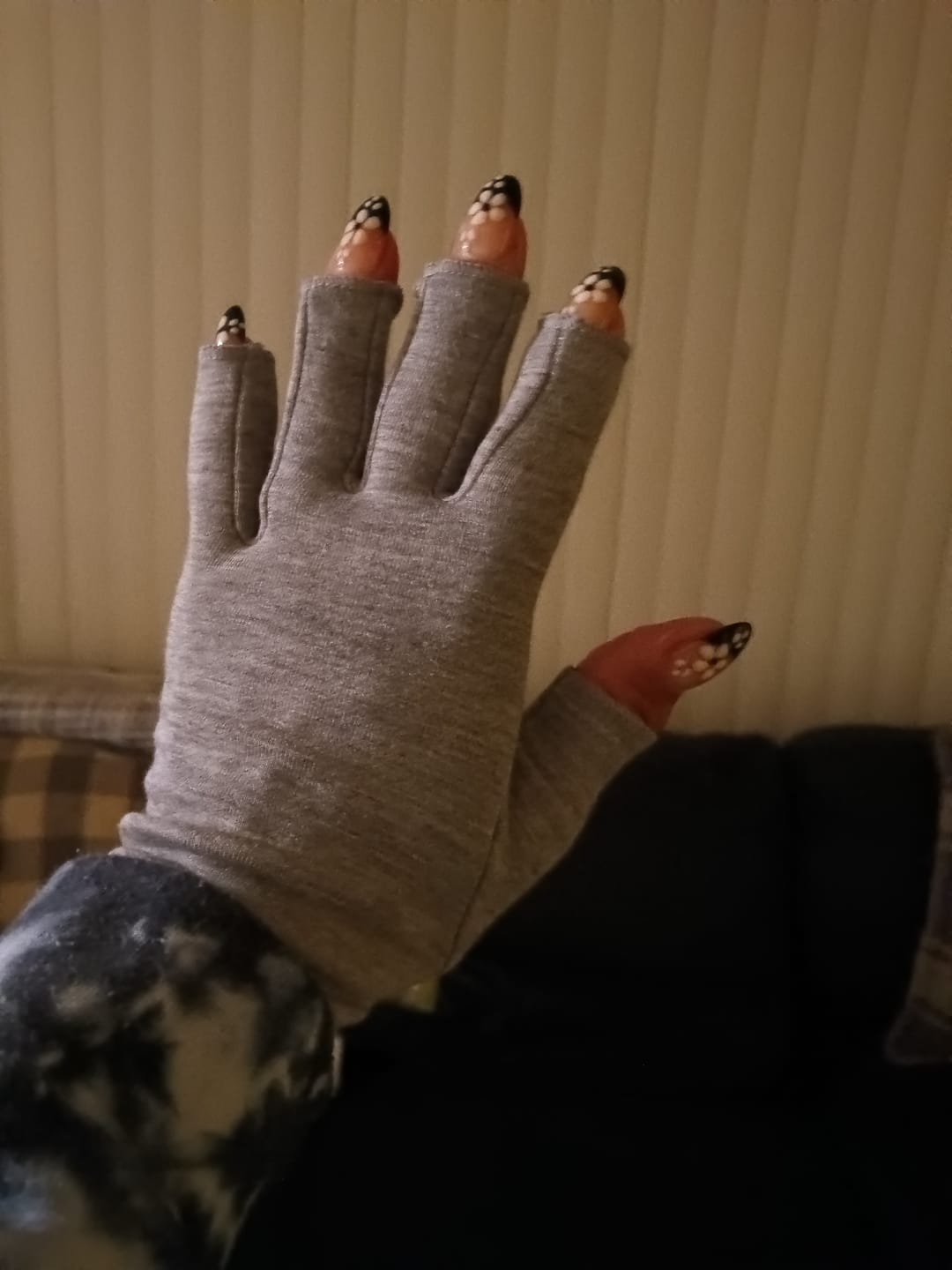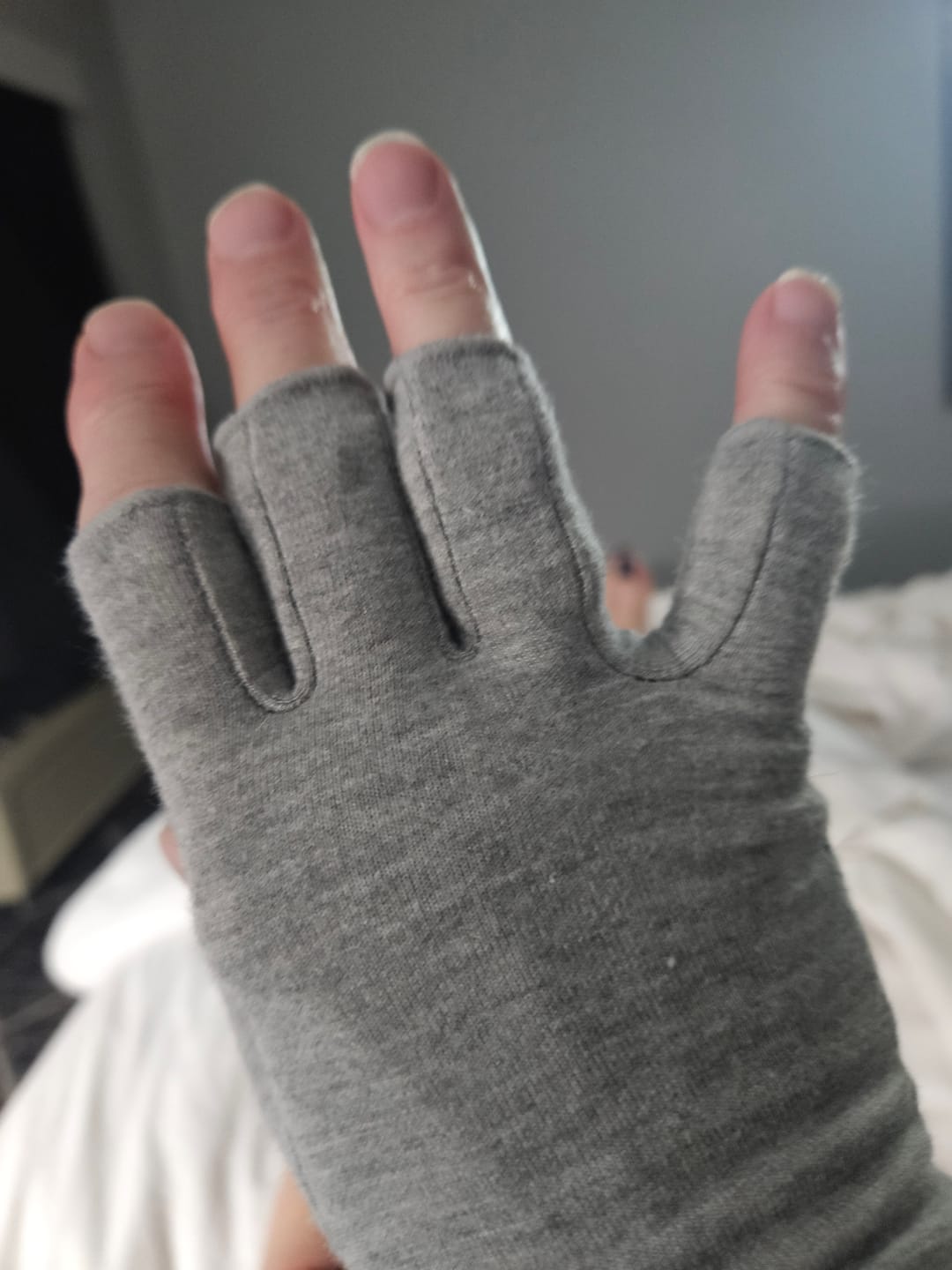 „Ich trage die Handschuhe jede Nacht. Schon nach drei Tagen wache ich ohne das stechende Ziehen in den Fingern auf. Das Material ist so angenehm – kein Schwitzen, kein Druckgefühl.“