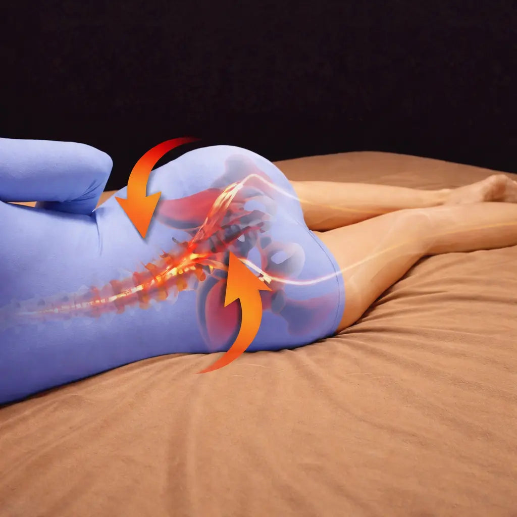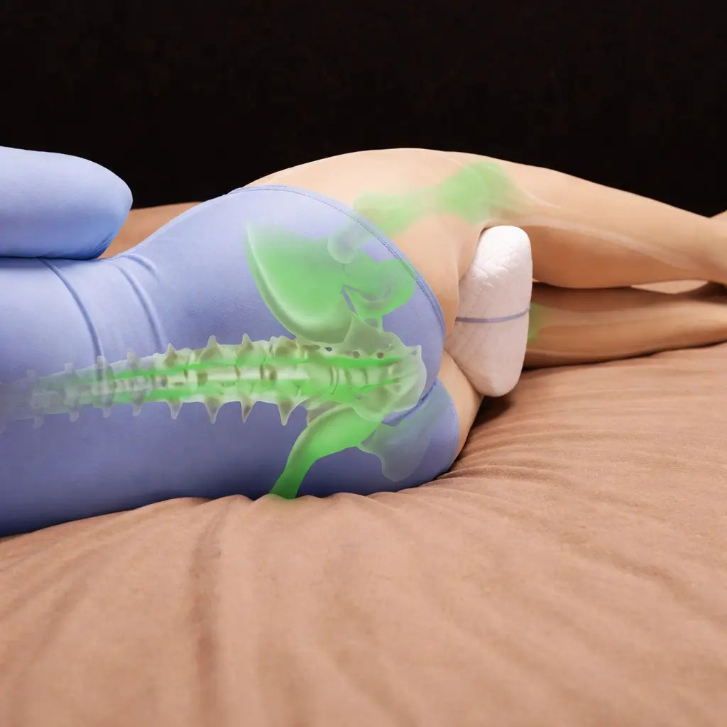 Sondern eine gezielte Lösung, die Ihre Beinposition im Schlaf kontrolliert, damit Ihre Hüfte stabil bleibt — statt sich stundenlang zu verdrehen.