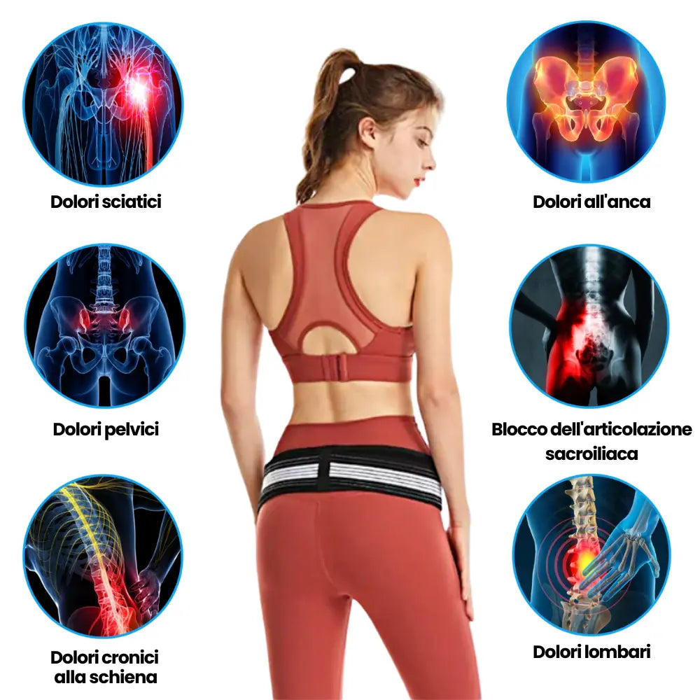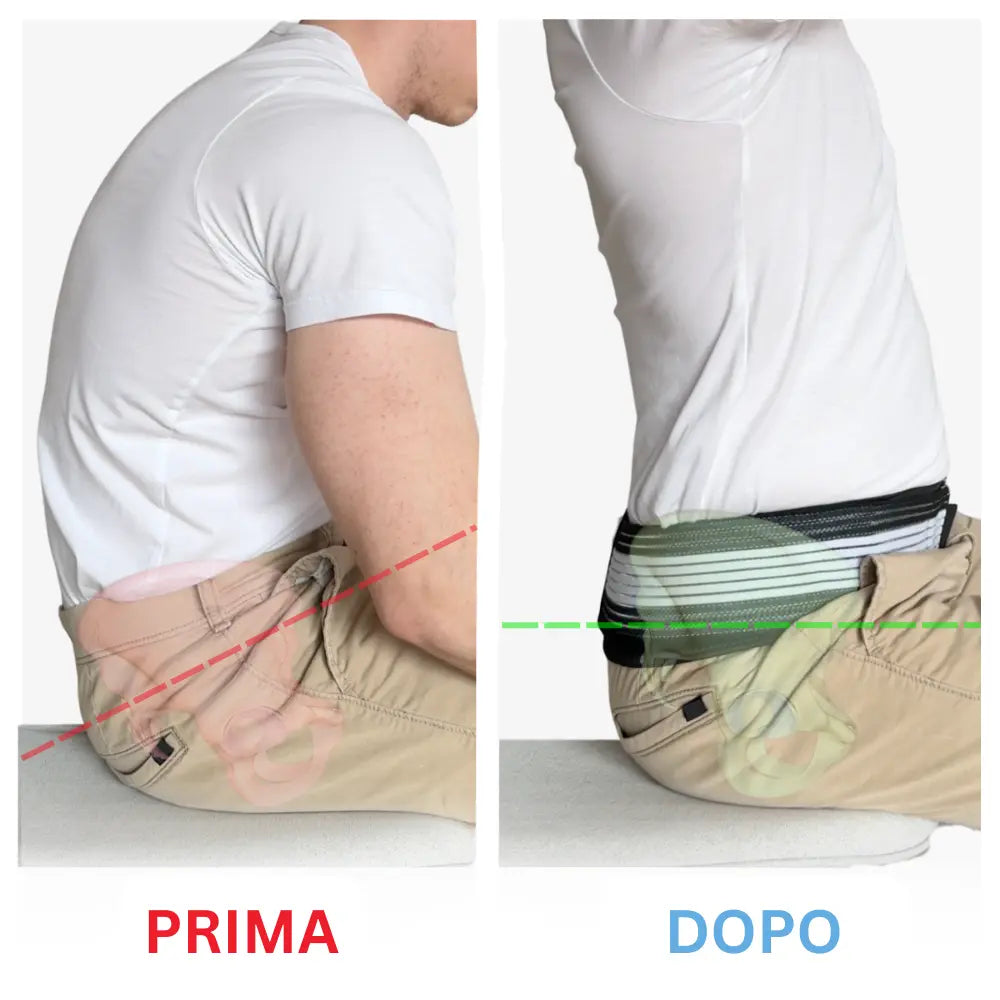 Il corretto sostegno della zona lombare e dei fianchi permette di diminuire la pressione sul nervo sciatico e di conseguenza il dolore migliorando la mobilità.