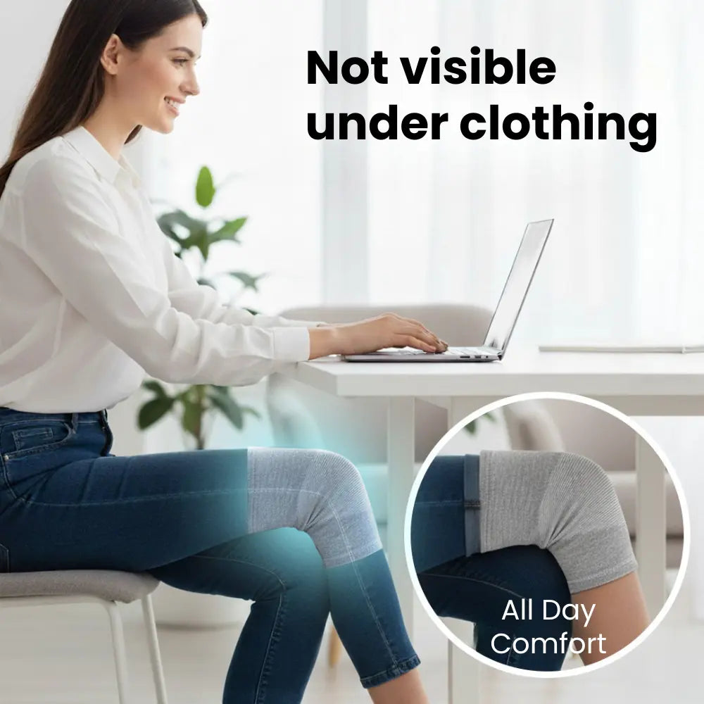 It relieves pressure on your joints, keeps your muscles warm, and supports natural range of motion while stabilizing your knees.