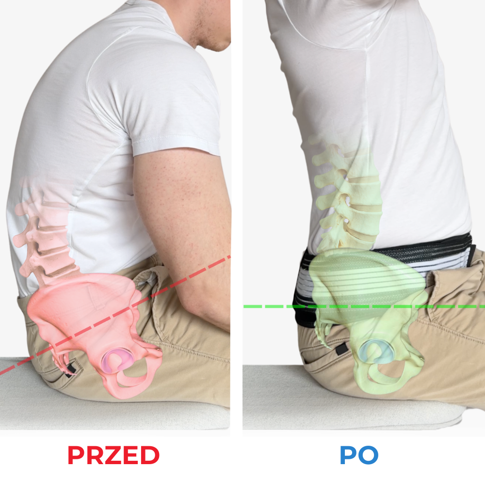 Der Orthogürtel wurde gezielt entwickelt, um die Wirbelsäule in eine natürliche Ausrichtung zu bringen und dabei den entstehenden Druck gleichmäßig auf die Wirbelkörper zu verteilen.